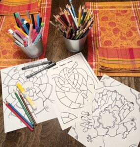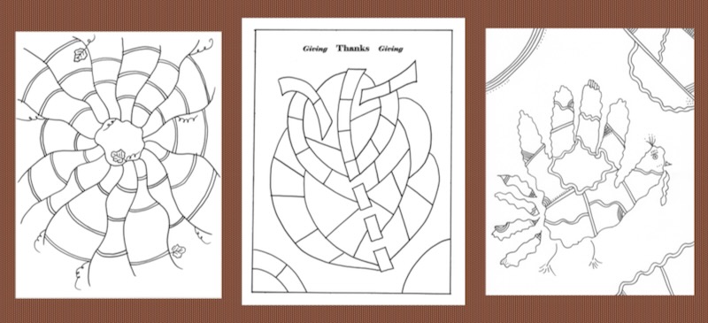Making a visual gratitude list can be an individual or family Thanksgiving Day activity–between dinner and dessert or after the meal. Give everyone at your Thanksgiving meal a coloring page/template. Provide pens and colored markers or pencils.